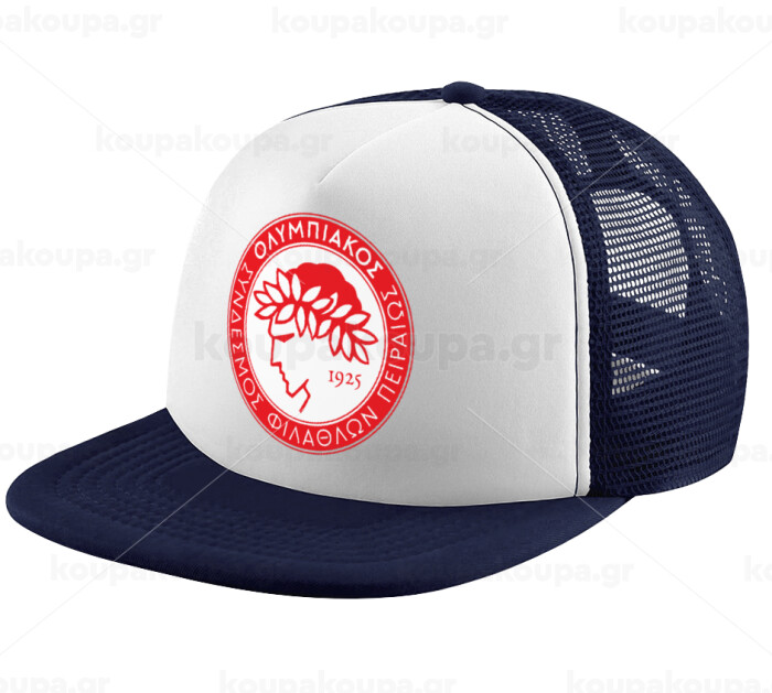 Ολυμπιακός, Adult Soft Trucker Hat with Dark Blue/White Mesh (POLYESTER, ADULT, UNISEX, ONE SIZE)