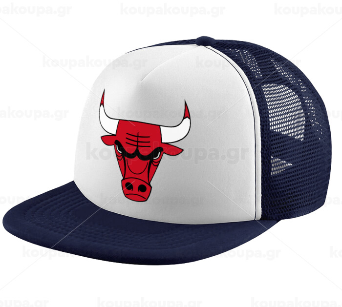 Chicago Bulls, Adult Soft Trucker Hat with Dark Blue/White Mesh (POLYESTER, ADULT, UNISEX, ONE SIZE)