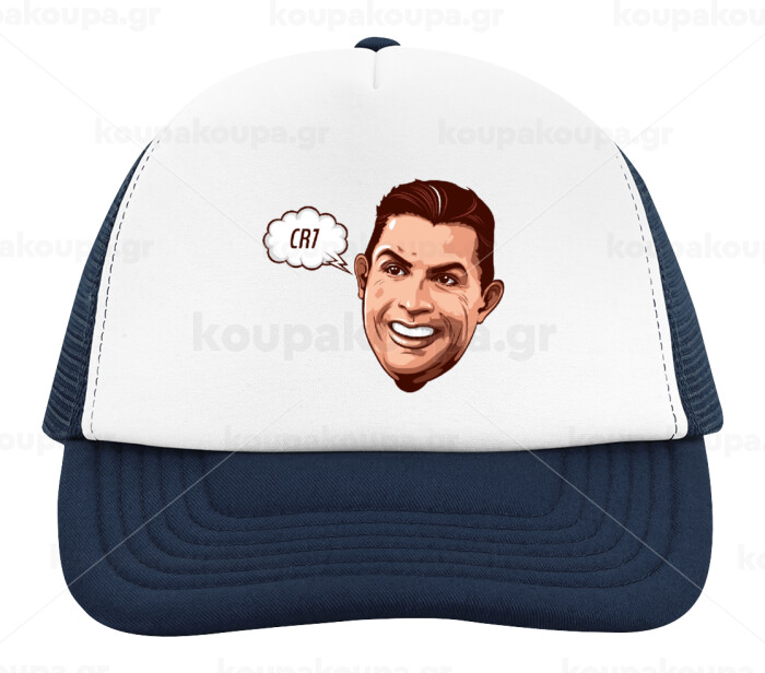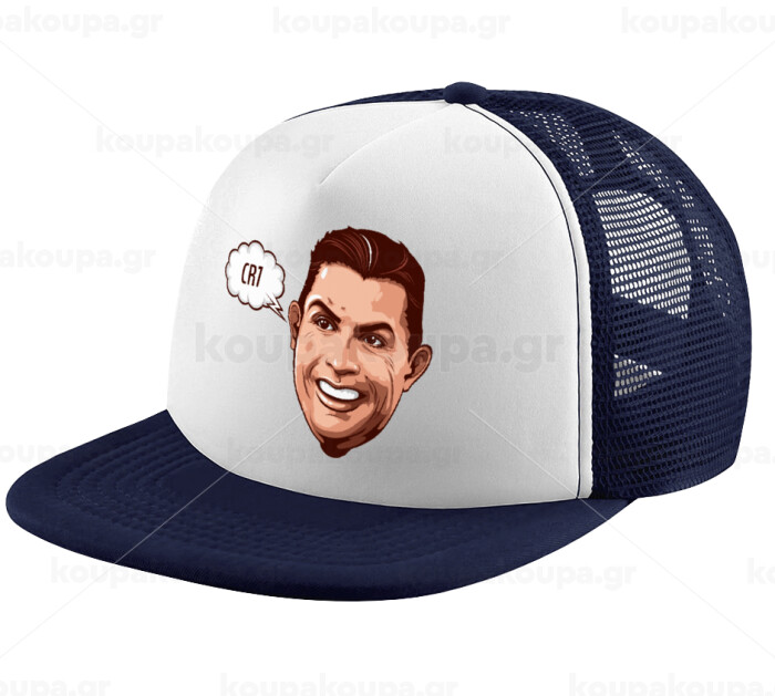 Cristiano Ronaldo, Adult Soft Trucker Hat with Dark Blue/White Mesh (POLYESTER, ADULT, UNISEX, ONE SIZE)