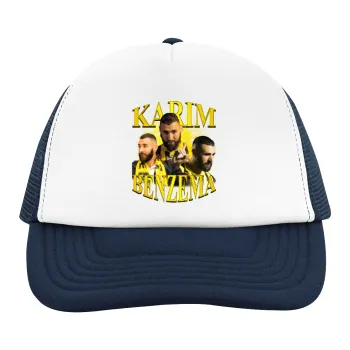 Karim Benzema, Adult Soft Trucker Hat with Dark Blue/White Mesh (POLYESTER, ADULT, UNISEX, ONE SIZE)