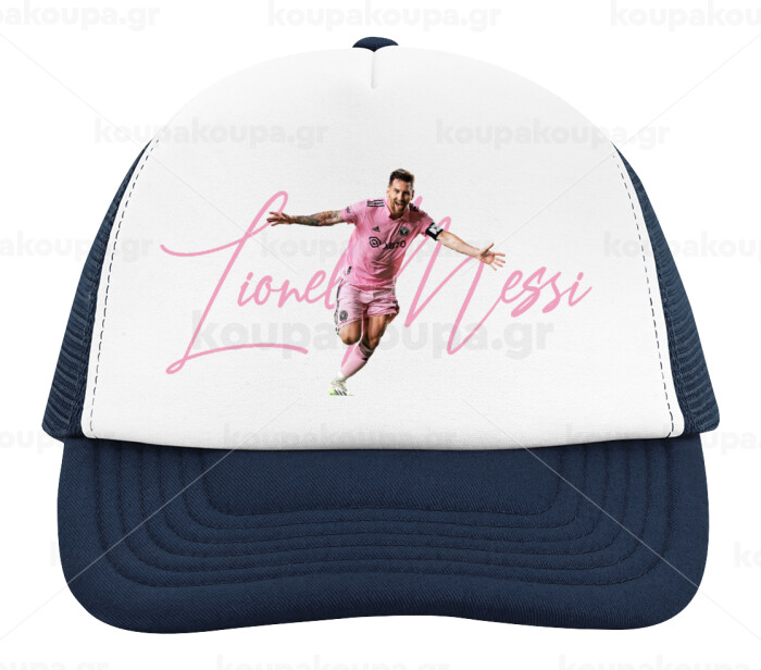 Lionel Messi inter miami jersey, Adult Soft Trucker Hat with Dark Blue/White Mesh (POLYESTER, ADULT, UNISEX, ONE SIZE)