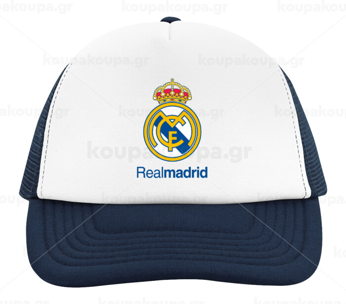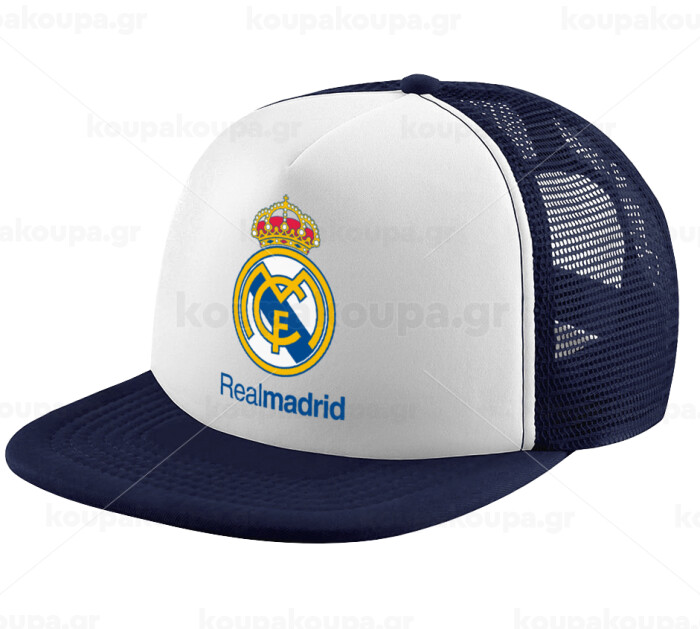 Real Madrid CF, Adult Soft Trucker Hat with Dark Blue/White Mesh (POLYESTER, ADULT, UNISEX, ONE SIZE)