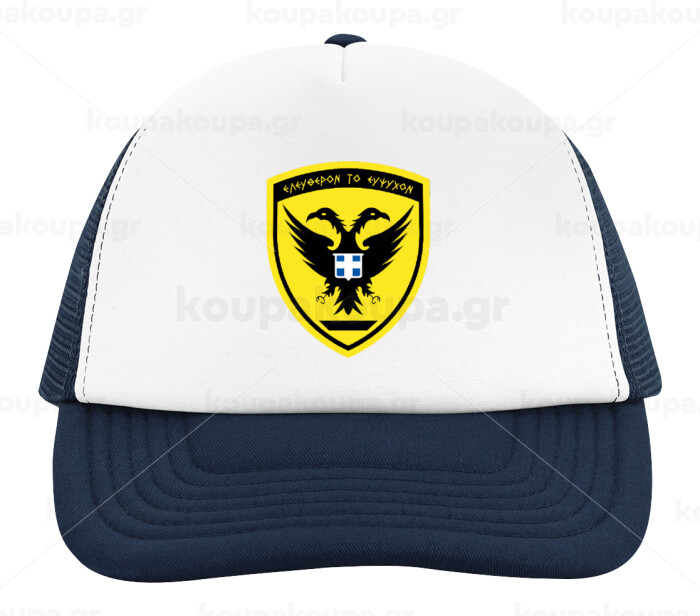 Ελληνικός Στρατός, Adult Soft Trucker Hat with Dark Blue/White Mesh (POLYESTER, ADULT, UNISEX, ONE SIZE)