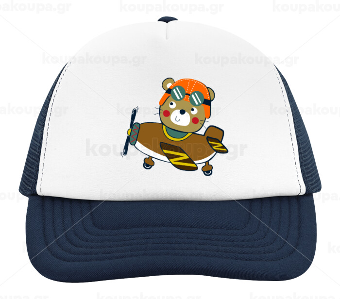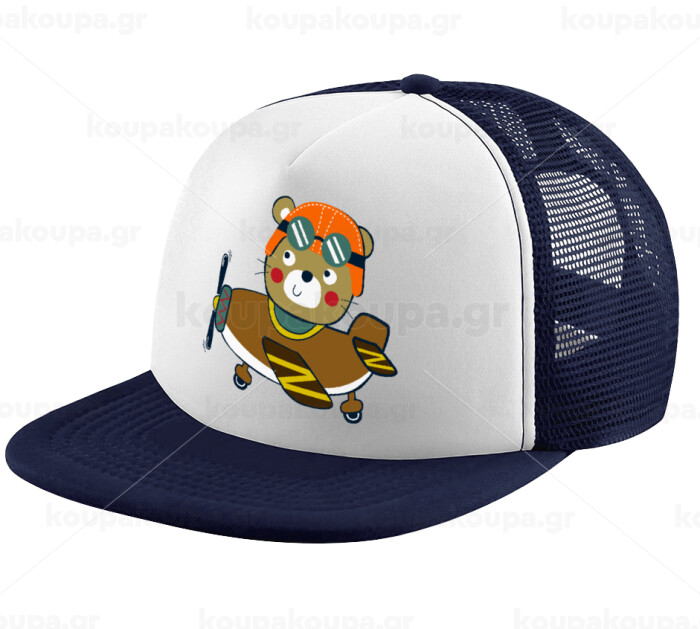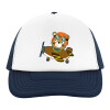 Kids Plane, Adult Soft Trucker Hat with Dark Blue/White Mesh (POLYESTER, ADULT, UNISEX, ONE SIZE)