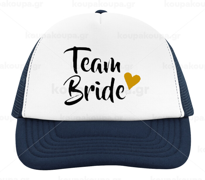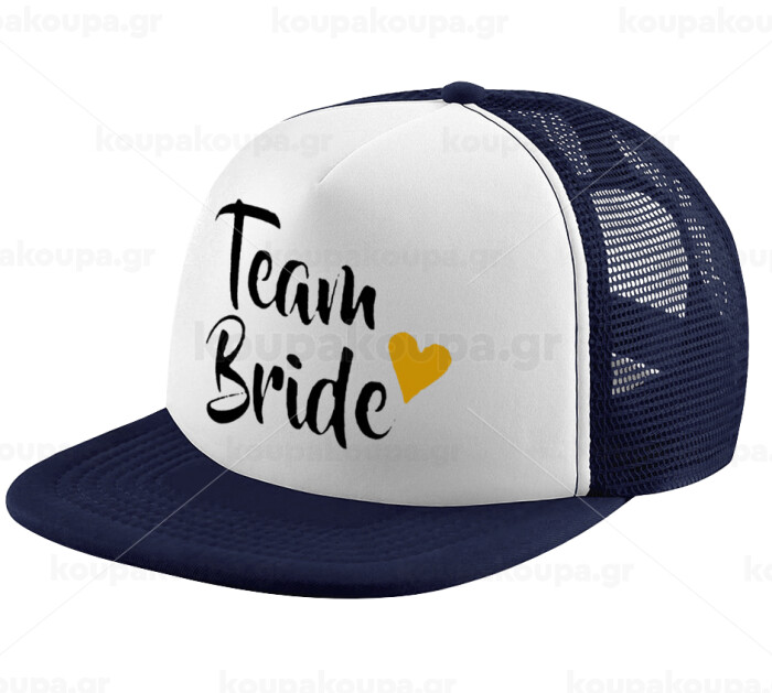 Team Bride, Adult Soft Trucker Hat with Dark Blue/White Mesh (POLYESTER, ADULT, UNISEX, ONE SIZE)