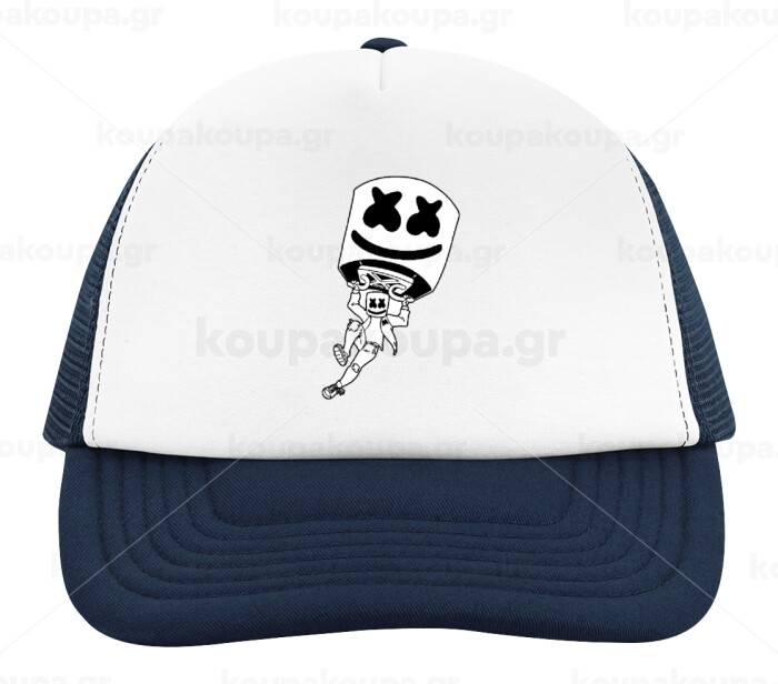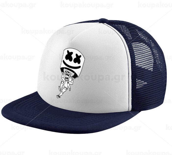 Fortnite Marshmello, Adult Soft Trucker Hat with Dark Blue/White Mesh (POLYESTER, ADULT, UNISEX, ONE SIZE)
