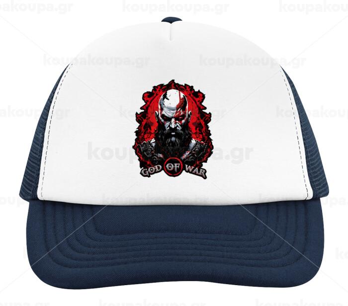 God of war, Adult Soft Trucker Hat with Dark Blue/White Mesh (POLYESTER, ADULT, UNISEX, ONE SIZE)