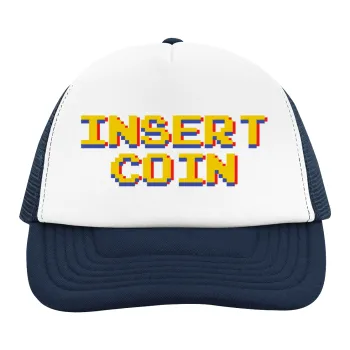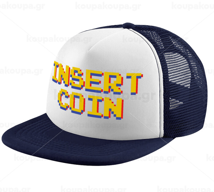 Insert coin!!!, Adult Soft Trucker Hat with Dark Blue/White Mesh (POLYESTER, ADULT, UNISEX, ONE SIZE)