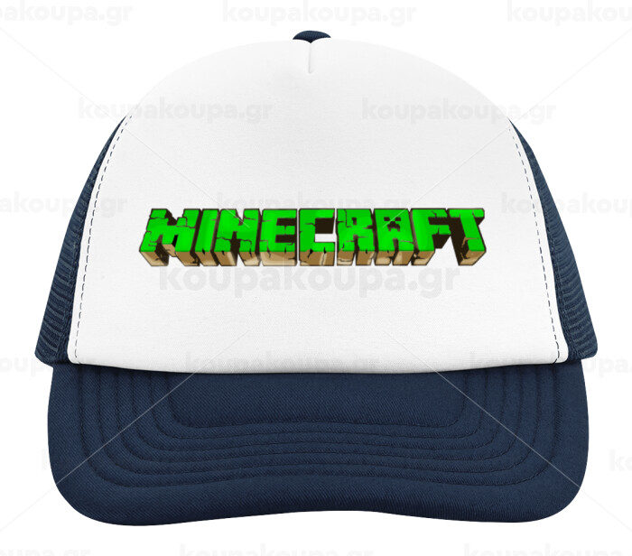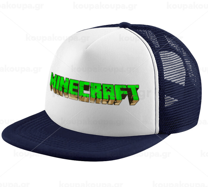Minecraft logo green, Adult Soft Trucker Hat with Dark Blue/White Mesh (POLYESTER, ADULT, UNISEX, ONE SIZE)