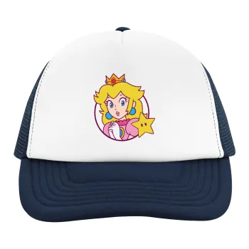 Princess Peach, Adult Soft Trucker Hat with Dark Blue/White Mesh (POLYESTER, ADULT, UNISEX, ONE SIZE)