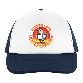 Steve's Lava Chicken, Adult Soft Trucker Hat with Dark Blue/White Mesh (POLYESTER, ADULT, UNISEX, ONE SIZE)