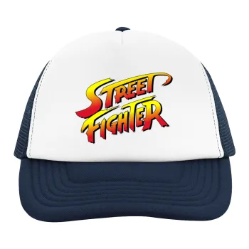 Street fighter, Adult Soft Trucker Hat with Dark Blue/White Mesh (POLYESTER, ADULT, UNISEX, ONE SIZE)