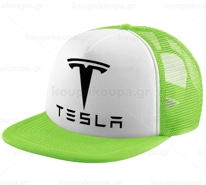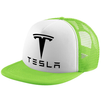 Tesla motors, Adult Soft Trucker Hat with Mesh GREEN/WHITE (POLYESTER, ADULT, ONE SIZE)