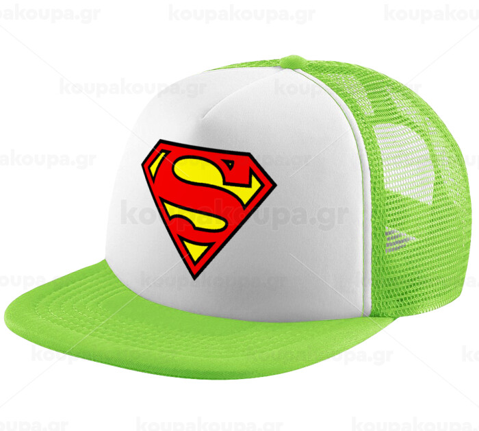 Superman vintage, Adult Soft Trucker Hat with Mesh GREEN/WHITE (POLYESTER, ADULT, ONE SIZE)