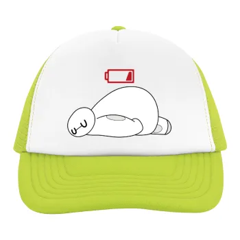 Baymax battery low, Adult Soft Trucker Hat with Mesh GREEN/WHITE (POLYESTER, ADULT, ONE SIZE)