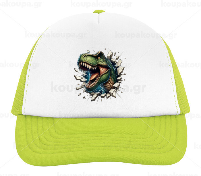 Dinosaur break wall, Adult Soft Trucker Hat with Mesh GREEN/WHITE (POLYESTER, ADULT, ONE SIZE)