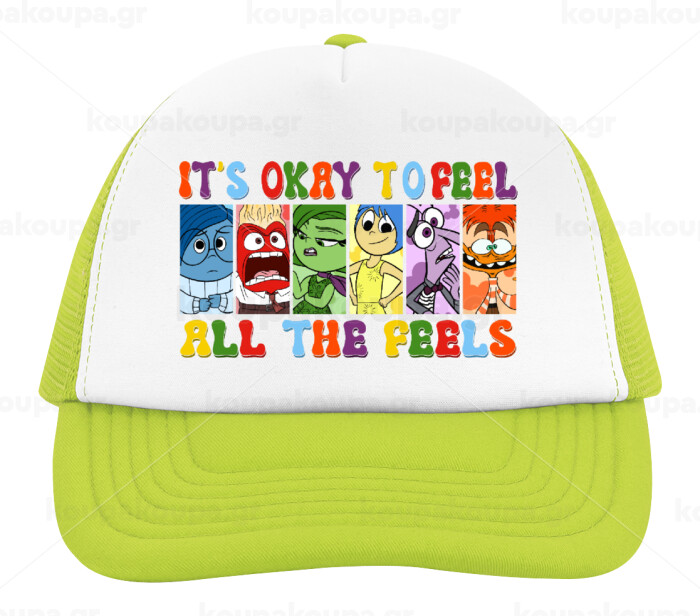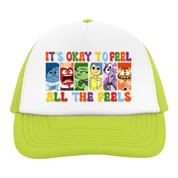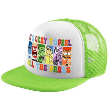 Inside Out It's Okay To Feel All The Feels , Adult Soft Trucker Hat with Mesh GREEN/WHITE (POLYESTER, ADULT, ONE SIZE)