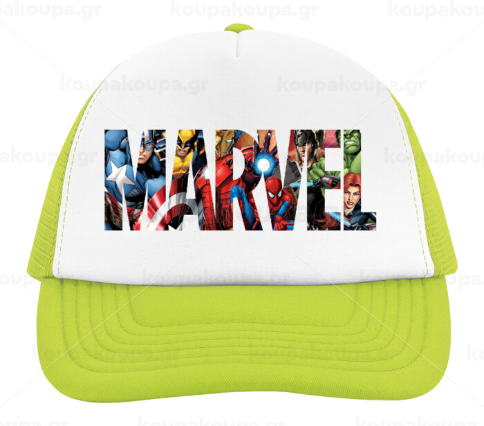 MARVEL characters, Adult Soft Trucker Hat with Mesh GREEN/WHITE (POLYESTER, ADULT, ONE SIZE)