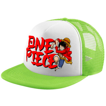 One Piece, Adult Soft Trucker Hat with Mesh GREEN/WHITE (POLYESTER, ADULT, ONE SIZE)