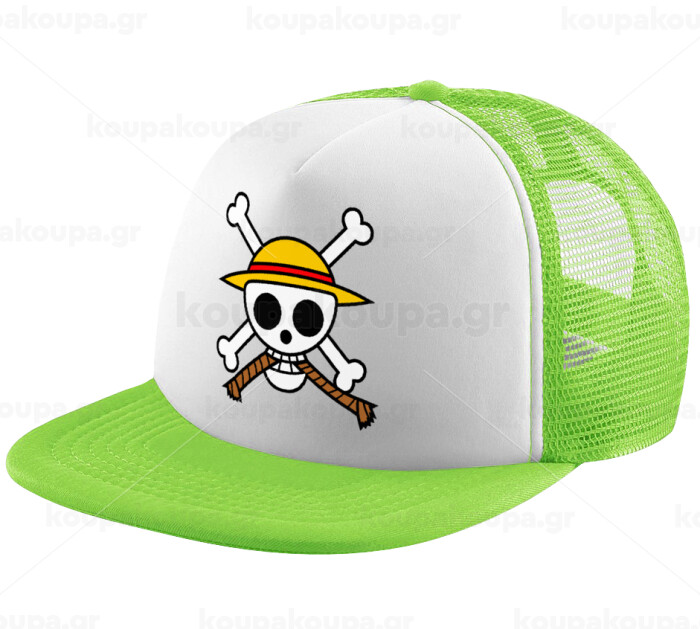 Onepiece skull, Adult Soft Trucker Hat with Mesh GREEN/WHITE (POLYESTER, ADULT, ONE SIZE)