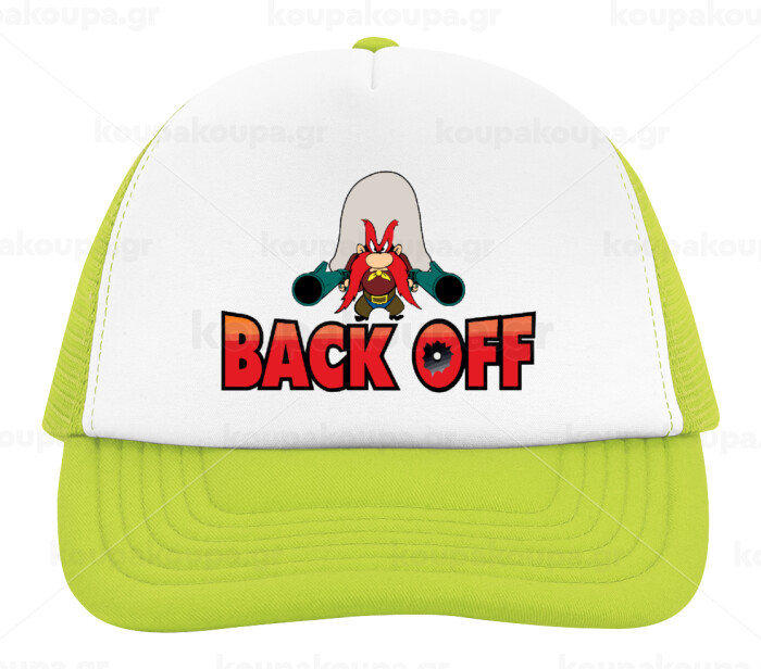 Yosemite Sam Back OFF, Adult Soft Trucker Hat with Mesh GREEN/WHITE (POLYESTER, ADULT, ONE SIZE)