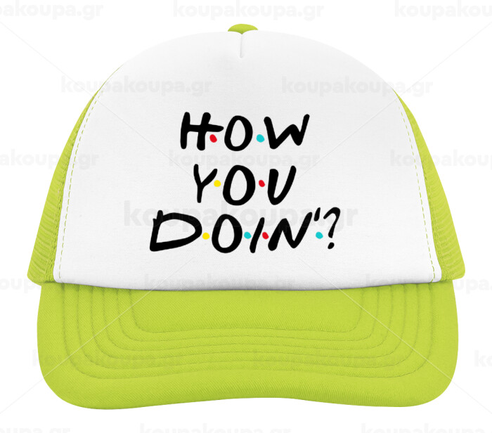 Friends How You Doin'?, Adult Soft Trucker Hat with Mesh GREEN/WHITE (POLYESTER, ADULT, ONE SIZE)