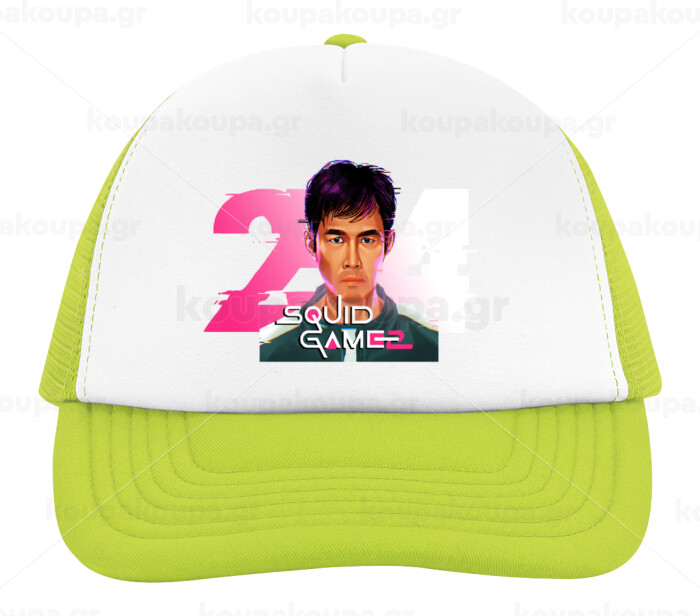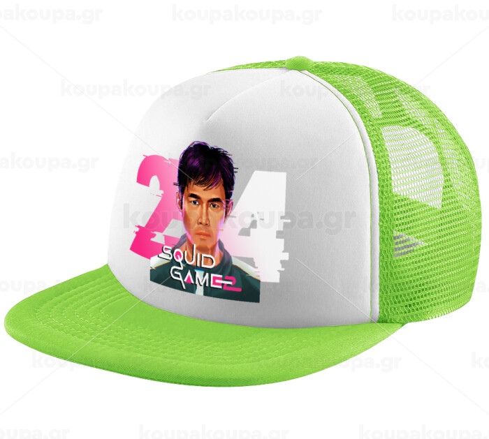 Squid game 456 Gi-Hun, Adult Soft Trucker Hat with Mesh GREEN/WHITE (POLYESTER, ADULT, ONE SIZE)