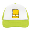 The Simpsons Bart, Adult Soft Trucker Hat with Mesh GREEN/WHITE (POLYESTER, ADULT, ONE SIZE)