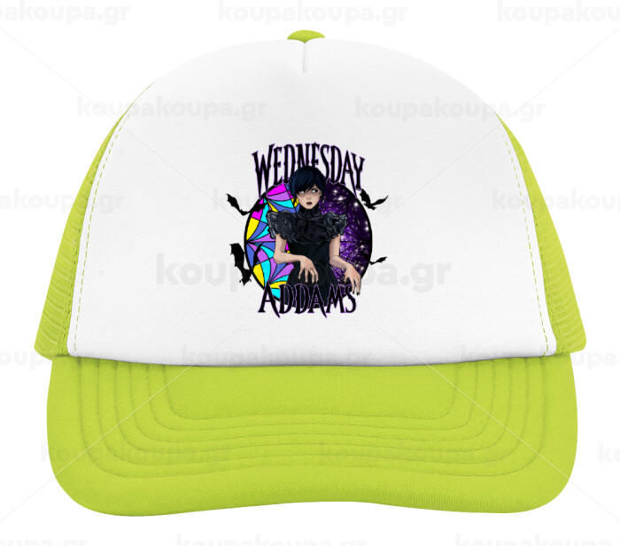 Wednesday Jenna Ortega, Adult Soft Trucker Hat with Mesh GREEN/WHITE (POLYESTER, ADULT, ONE SIZE)