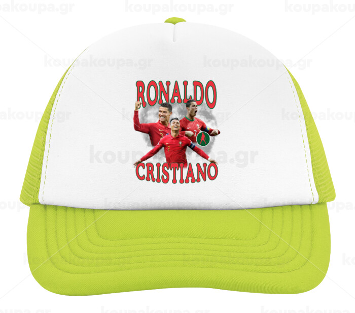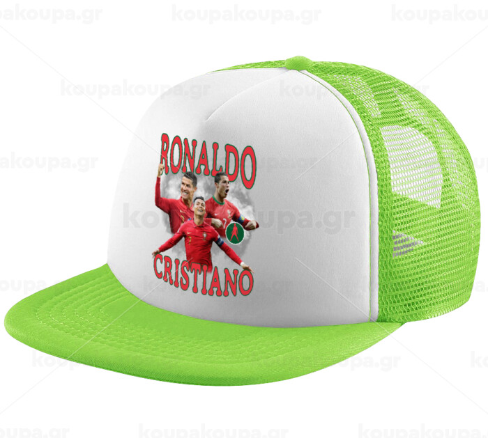 Cristiano Ronaldo, Adult Soft Trucker Hat with Mesh GREEN/WHITE (POLYESTER, ADULT, ONE SIZE)
