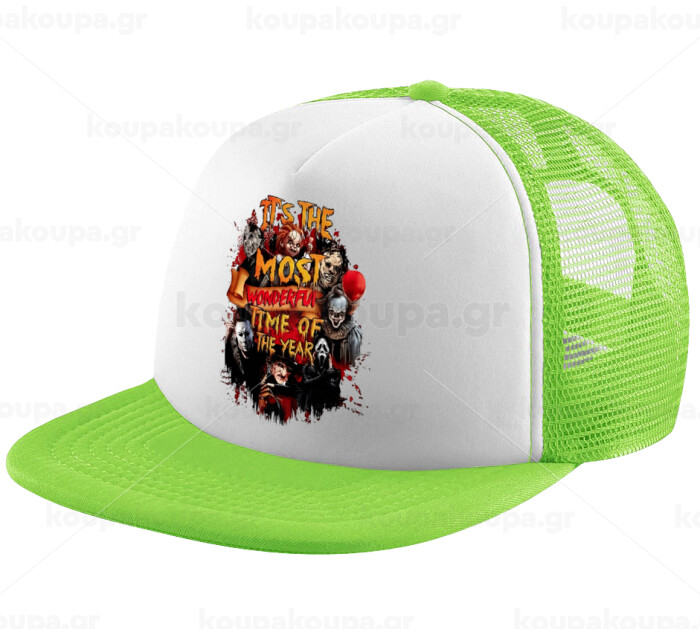 Halloween it's most wonderful time of the year, Adult Soft Trucker Hat with Mesh GREEN/WHITE (POLYESTER, ADULT, ONE SIZE)