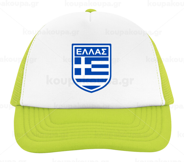 Hellas, Adult Soft Trucker Hat with Mesh GREEN/WHITE (POLYESTER, ADULT, ONE SIZE)