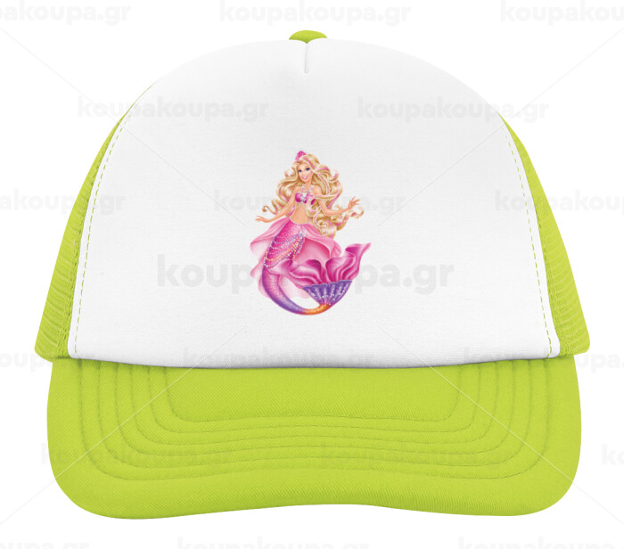Barbie mermaid blue, Adult Soft Trucker Hat with Mesh GREEN/WHITE (POLYESTER, ADULT, ONE SIZE)