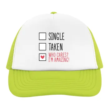 Single, Taken, Who cares i'm amazing, Adult Soft Trucker Hat with Mesh GREEN/WHITE (POLYESTER, ADULT, ONE SIZE)