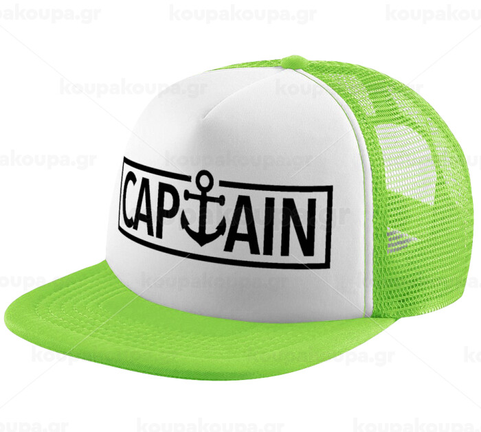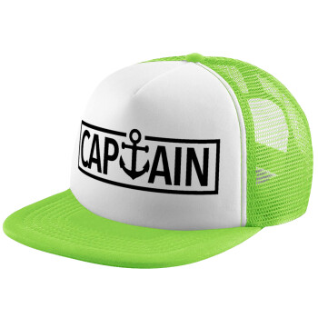 CAPTAIN, Adult Soft Trucker Hat with Mesh GREEN/WHITE (POLYESTER, ADULT, ONE SIZE)