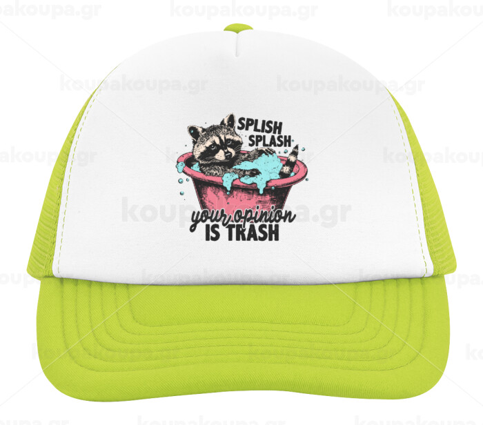 Splish splash your opinion is trash, Adult Soft Trucker Hat with Mesh GREEN/WHITE (POLYESTER, ADULT, ONE SIZE)