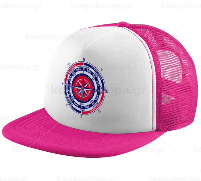 Wind compass, Adult Soft Trucker Hat with Pink/White Mesh (POLYESTER, ADULT, UNISEX, ONE SIZE)