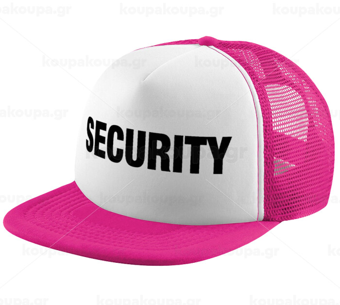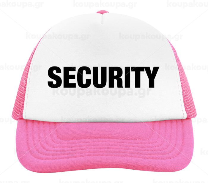 Security, Adult Soft Trucker Hat with Pink/White Mesh (POLYESTER, ADULT, UNISEX, ONE SIZE)