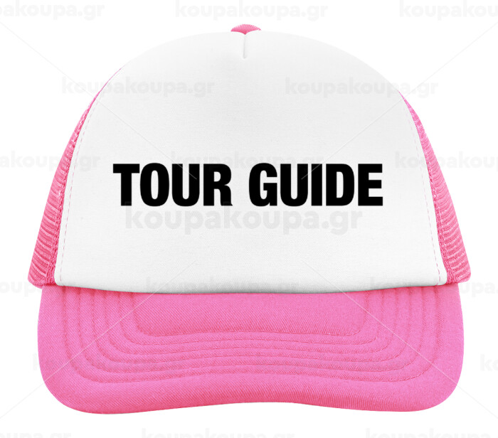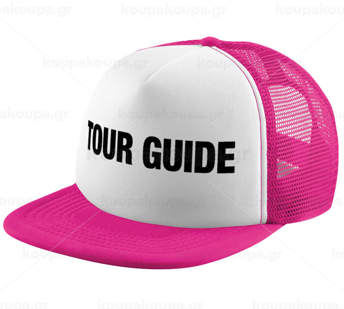 Tour Guide, Adult Soft Trucker Hat with Pink/White Mesh (POLYESTER, ADULT, UNISEX, ONE SIZE)
