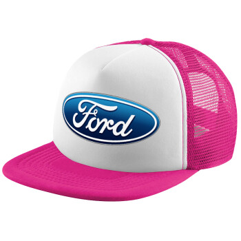 Ford, Adult Soft Trucker Hat with Pink/White Mesh (POLYESTER, ADULT, UNISEX, ONE SIZE)