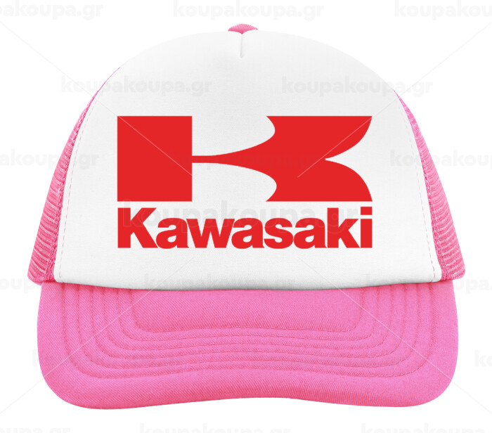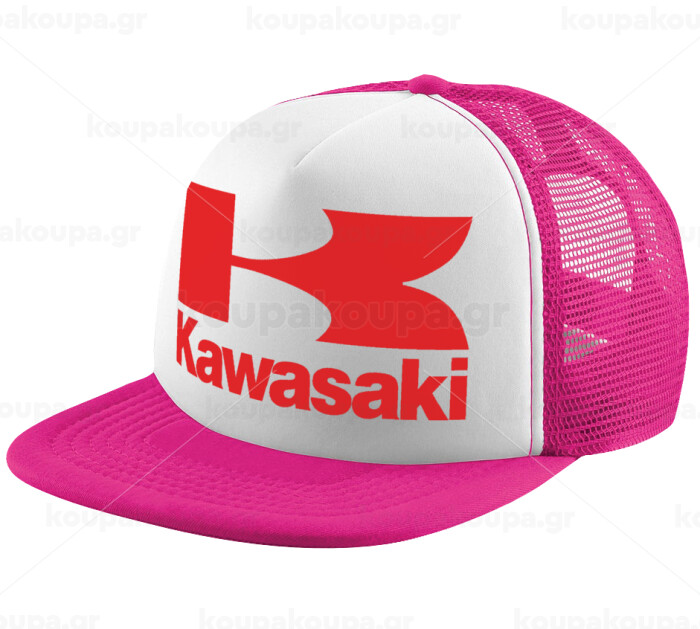 Kawasaki, Adult Soft Trucker Hat with Pink/White Mesh (POLYESTER, ADULT, UNISEX, ONE SIZE)
