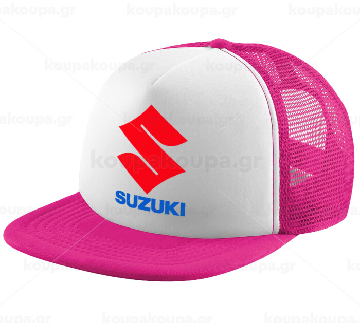SUZUKI, Adult Soft Trucker Hat with Pink/White Mesh (POLYESTER, ADULT, UNISEX, ONE SIZE)