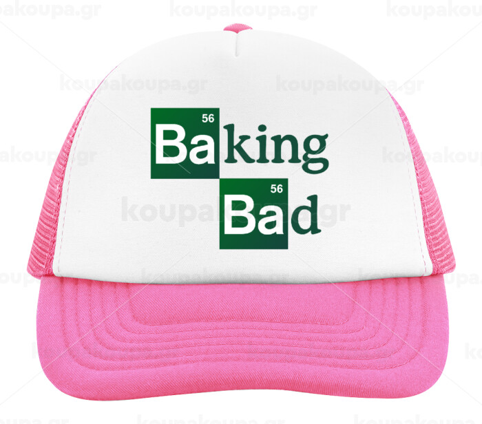 Baking Bad, Adult Soft Trucker Hat with Pink/White Mesh (POLYESTER, ADULT, UNISEX, ONE SIZE)