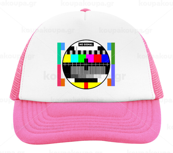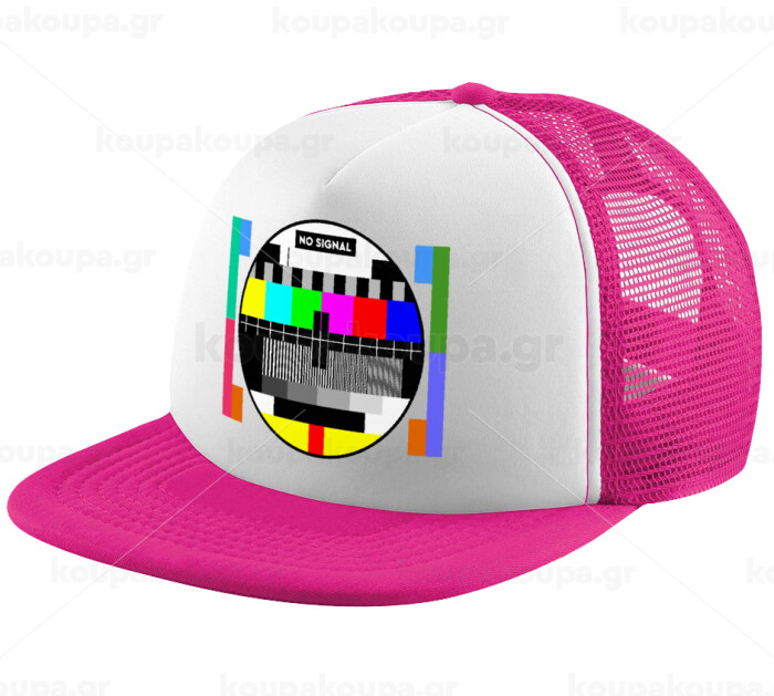 No signal, Adult Soft Trucker Hat with Pink/White Mesh (POLYESTER, ADULT, UNISEX, ONE SIZE)