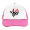 Stranger Things upside down, Adult Soft Trucker Hat with Pink/White Mesh (POLYESTER, ADULT, UNISEX, ONE SIZE)