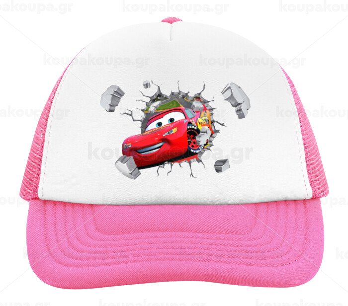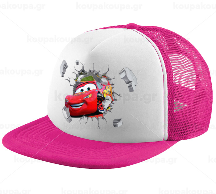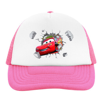 Brick McQueen, Adult Soft Trucker Hat with Pink/White Mesh (POLYESTER, ADULT, UNISEX, ONE SIZE)