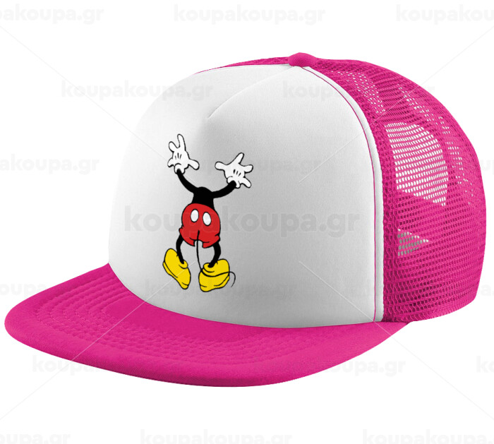 Mickey hide..., Adult Soft Trucker Hat with Pink/White Mesh (POLYESTER, ADULT, UNISEX, ONE SIZE)