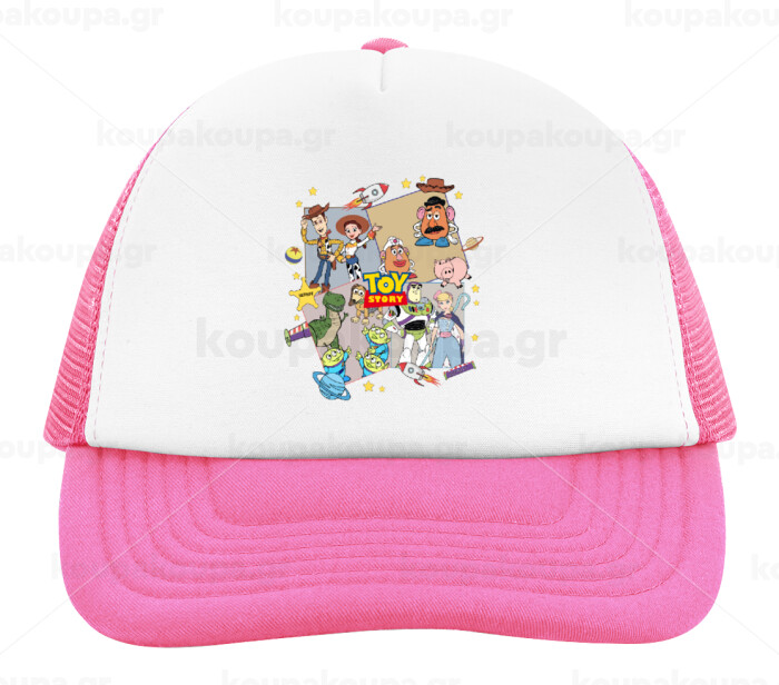 toystory characters, Adult Soft Trucker Hat with Pink/White Mesh (POLYESTER, ADULT, UNISEX, ONE SIZE)
