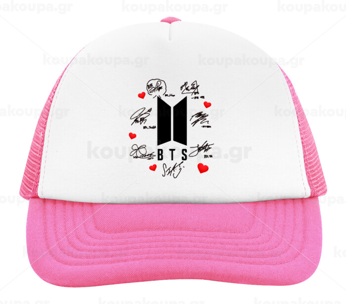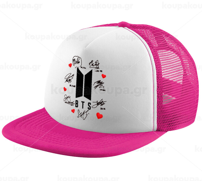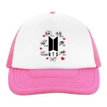 BTS signs, Adult Soft Trucker Hat with Pink/White Mesh (POLYESTER, ADULT, UNISEX, ONE SIZE)