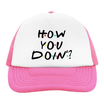Friends How You Doin'?, Adult Soft Trucker Hat with Pink/White Mesh (POLYESTER, ADULT, UNISEX, ONE SIZE)